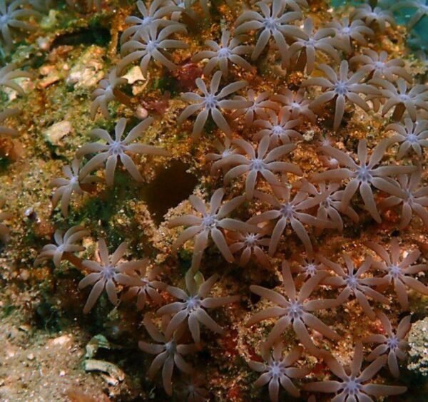 La Acrossota amboinensis è un corallo molle molto affascinante, caratterizzato da polipi verticali senza pinnule che nascono da stoloni e formano un manto libero sulla roccia. Le sue colorazioni variano dal beige al marrone‑verde, e la presenza di zooxantelle nei tessuti le permette di trarre parte del nutrimento dalla luce.