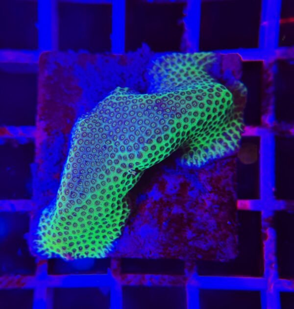 Il Porites “Green Eyes” è uno dei Porites più affascinanti e ricercati nel panorama degli SPS/LPS a crescita massiva, celebre per la sua base compatta e naturale impreziosita da polipi di un verde intenso e luminoso, che sembrano piccoli “occhi” brillare sulla superficie del corallo. Un effetto visivo elegante ma allo stesso tempo magnetico, capace di catturare l’attenzione senza risultare eccessivo.