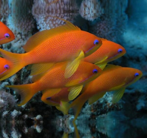 Lo Pseudanthias squamipinnis è, una piccola cernia, un serranide. Sono pesci di superficie, si possono trovare fino a 55 metri di profondità ma in genere si trovano attorno ai 5 metri, e sono pesci di banco.