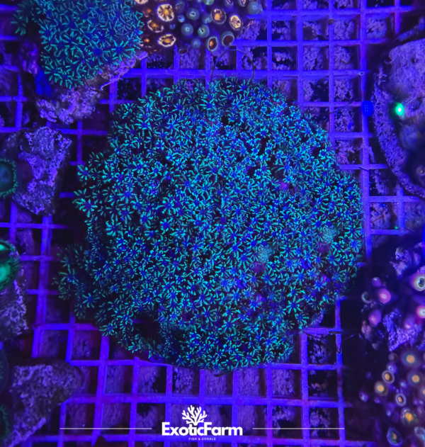 Uno dei suoi punti di forza è la crescita compatta e omogenea: si espande in piccoli ciuffi molto ordinati che, nel tempo, formano un manto denso e uniforme, perfetto per valorizzare zone spoglie del reef o per creare contrasti cromatici con LPS e SPS più massicci. La sua natura delicata ma vigorosa lo rende un ottimo candidato per composizioni ricercate e per acquari che puntano su armonia e colore.