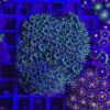 Ogni polipo presenta un disco delicato ma intensamente colorato, con tonalità che variano dal blu ghiaccio al blu elettrico, spesso accompagnate da riflessi violacei che aggiungono profondità ed eleganza. Sotto illuminazione LED attinica, il Sympodium Blue rivela il meglio di sé: la fluorescenza blu assume un bagliore cristallino e avvolgente, mentre i polipi sembrano assumere una luminescenza morbida e quasi “corallina” nella texture. L’effetto complessivo è quello di una distesa di piccole stelle marine blu che pulsano leggermente con il movimento dell’acqua, creando un impatto visivo ipnotico e rilassante.